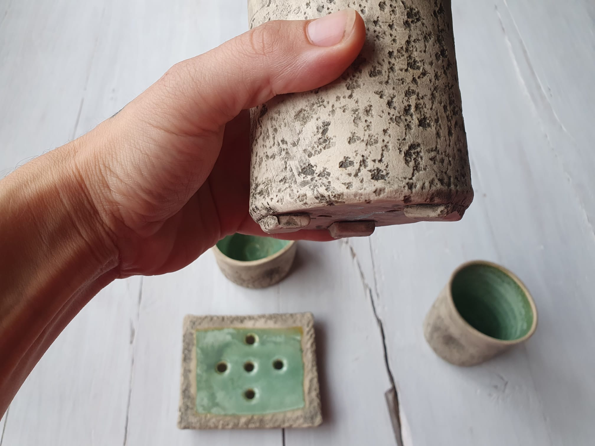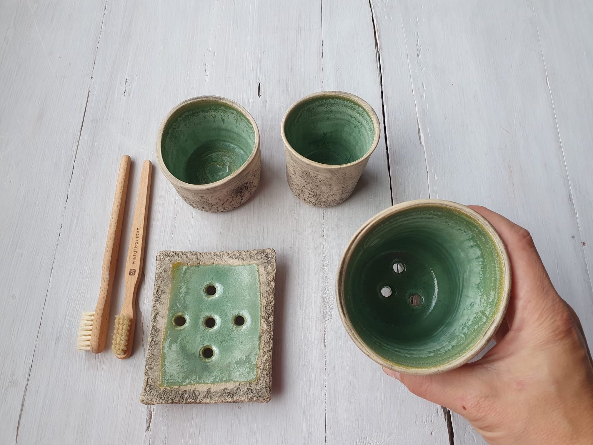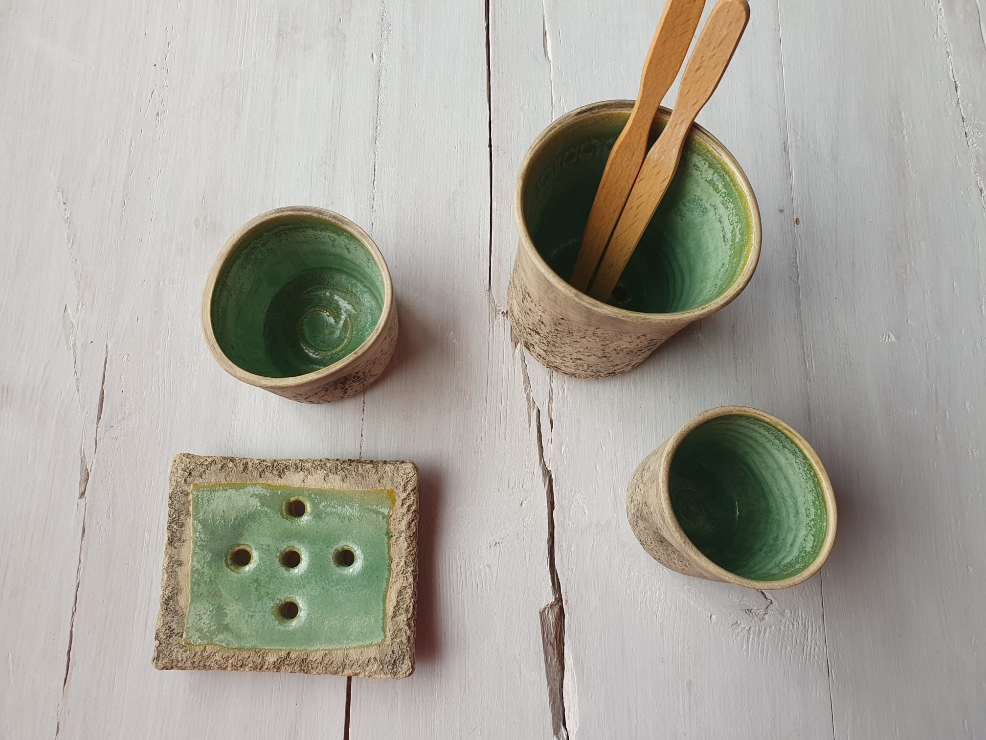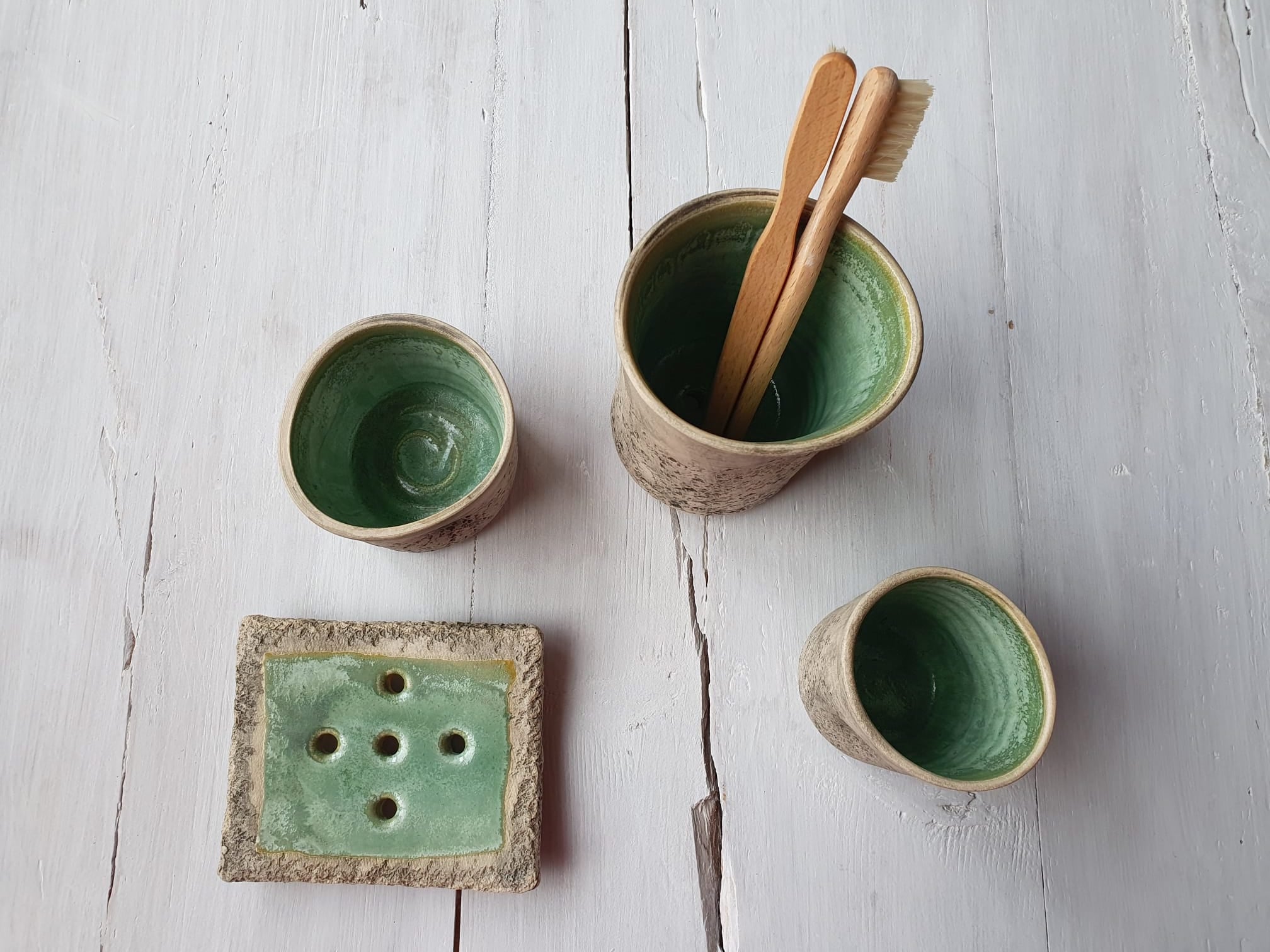 so convenient, yet it adds class and a touch of nature to your bathroom. Or kitchen counter, depending on where you want to place the various pieces of this handmade set.